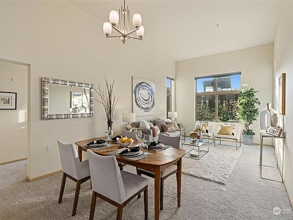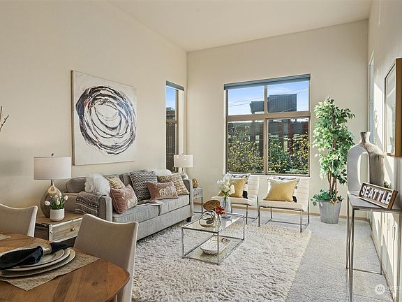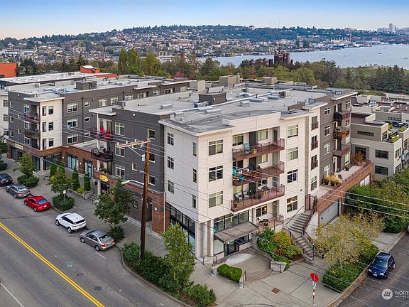 Seller is offering $15,000 towards rate buy-down or buyer can choose how to apply it. Rare opportunity to grab a super spacious 2bed, 2 full bath west facing corner unit in the heart of Wallingford located just steps from Gas Works Park & Burke Gilman Trail.  Easy level access from secured garage directly to unit including 2 prkg spaces next to the elevator. You will be surprised how large this home feels due to the exceptionally high vaulted ceilings that flood natural light throughout.  2 generous sized bedrooms, including ensuite & walk-in closet.  Separate office/den for working from home/flex space.  Coveted location & walk score. Easy commute to UW, Amazon & Fremont. Short stroll to restaurants, cafes & recreation. Dog/cat friendly.