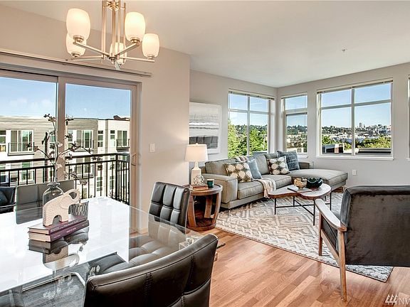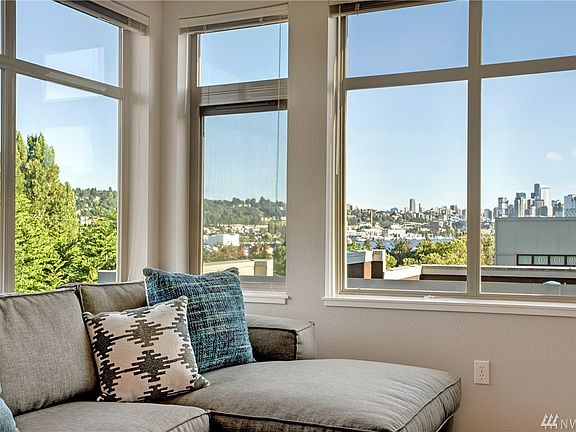 This home has plenty of space to spread out and live large! Extra tall ceilings & plentiful windows w/beautiful lake and city views. Two giant bedrooms: one with an en suite bathroom and walk-in closet, the other is big enough for an office, guest room, or both! Host a friend or two on the extra-large deck off of the dining room. Two parking spots! Easy access to the Burke Gilman, Fremont, U-District & Downtown. Well managed bldg: high reserves, rental cap met, pet-friendly, & FHA approved.