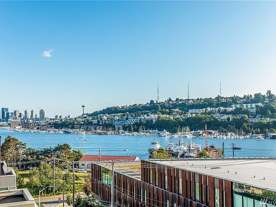 Impeccable, west facing top floor studio in Wallingford with sweeping views of Lake Union, Space Needle and downtown, offering the best in modern necessities. Light filled and spacious home with secure access, featuring 9 feet ceiling,hardwood floors,slab granite kitchen,stainless steel appliances, abundance of organized closet space, and garage parking. Footsteps to Burke-Gilman trail and Gas Works park. Low HOA dues. This is Tavona in Wallingford.