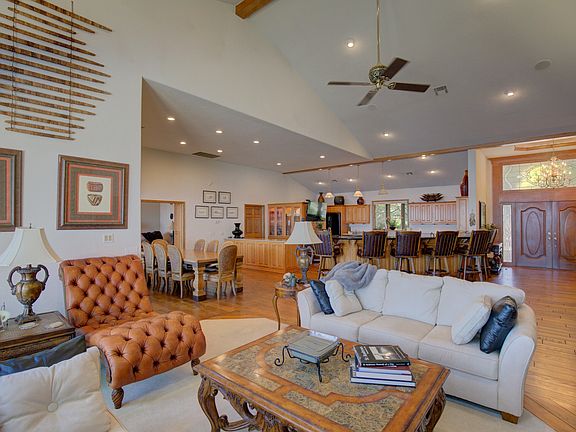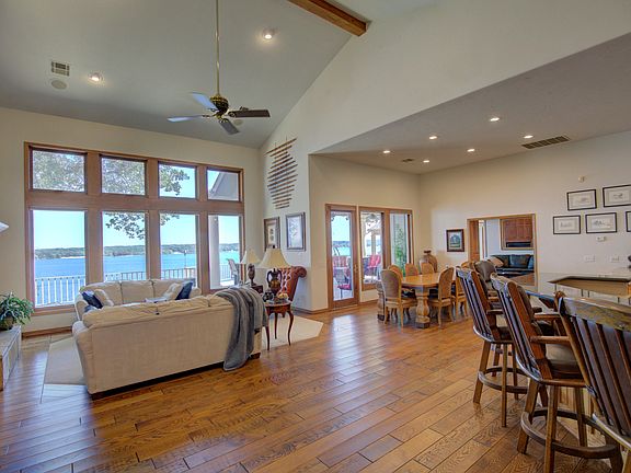 THE PARTY HOUSE! This is a great house for entertaining. A one level plan w/ 4 Bdrm,s Lg open great rm viewing the lake, Beautiful hardwood floors, lg fireplace, Primary suite w/ a den(could be a home office, 2 walk-in closets,New floors, awesome kitchen w large bar, NEW appliances, 2 ovens, lots of cabinets (you will LOVE this kitchen), Lg lakeside deck w/ exceptional view's, New ceiling fans, 3-car garage w/ heated workshop. A storm rm. 4 Bdrm, 3 baths, den,LOTS of BIG closets,Custom built for retirement. A well built home. Impressive Courtyard entry.Located on a quiet street, w/Lg greenbelt area across road. A MUST SEE.( Occupied full time-need notice to show). 3a/c units ( 2 new) New Bosh Dishwasher,