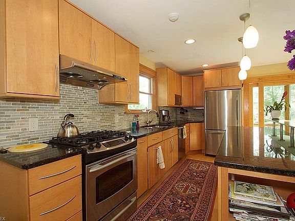 Charming 3 bedroom Cape Cod, with hardwood floors thru-out. The lovely living room is light and bright with plenty of windows and a lovely gas fireplace. The Kitchen/great room has been totally updated with granite counters, tile backsplash and all stainless appliances - the room is large enough for a good sized dinner party. There is a very large bar with stools for the chef to show off culinary skills while chatting with guests. There are even sliding glass doors to a huge deck for outdoor dining . The very spacious and lovely master suite is one the first floor and has more than abundant closet space. The upscale, private master bath has a jacuzzi tub, large shower and vaulted ceiling. The second floor also has all hardwood floors and is ideal for an office or extra bedrooms. The property itself is stunning, with establish flower gardens, a fenced area for vegetable gardening - all on nearly an acre. This is a Nature Lovers Paradis!