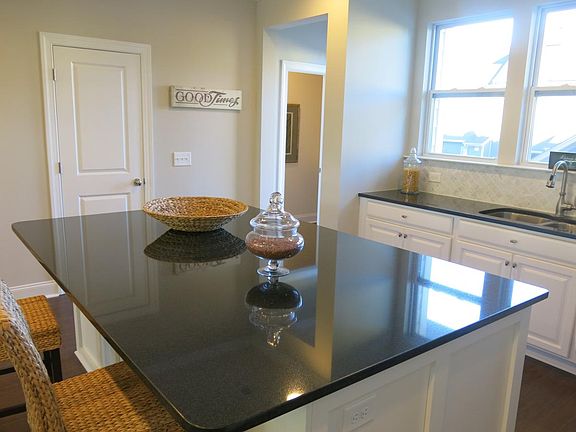 The home has a gourmet kitchen with granite countertops and tile backsplash, oversized kitchen island, and stainless steel appliances. A large dining room and a spacious great room.