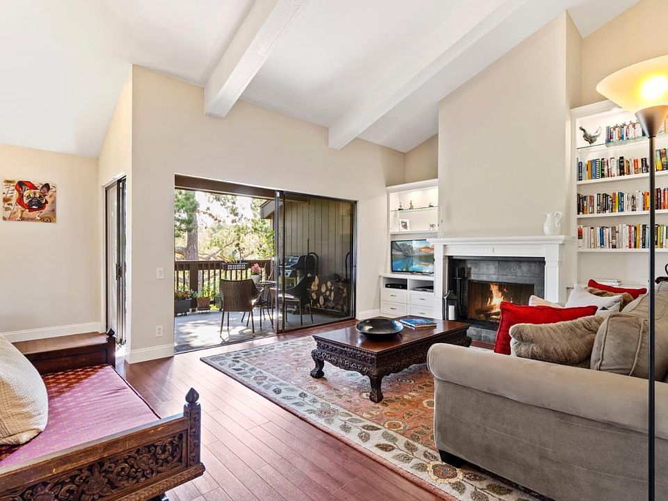 Brittan Heights where "City of Good Living meets the feel of Tahoe". This top floor 2 bedroom, 2 bath is in a incredible location with beautiful canyon views. Vaulted ceilings with plenty of windows and natural lighting makes this home feel open and inviting. The living room has laminate wood floors and a beautiful custom fireplace with mantel and built ins on both sides. A large balcony with 2 sliding doors off living room and dining room making this great for entertaining with the indoor/outdoor feel. Kitchen has beautiful granite counter tops and tile flooring with a laundry room off it. Down the hall are two spacious bedrooms with vaulted ceilings. The master bedroom closet has California Closet custom built-ins and in suite bathroom. Marvel at your canyon views, relax by a fire and enjoy this wonderful home. The community amenities include pools, tennis courts, play structure, clubhouse, nearby hiking trails. Edgewood park, Crestview park, Hwy 280 and downtown are close by.