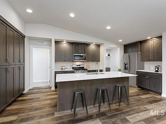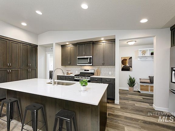 The PEORIA MODEL| Blackrock Homes. Introducing the Urban Collection at Skybreak- Enjoy COMMUNITY POOL (2025), pickle ball court, playground + community dog parks! No backyard neighbors & views of the Boise Front Foothills.. INCLUDES FULL VINYL FENCING & FRONT & REAR YARD SPRINKLERS & LANDSCAPING. All quartz countertops (No cheap laminate), hardwood (lvp), upgraded trim detail, SS appliances including 5 burner gas range. Vaulted ceilings, spacious great room. Light & airy floor plan w/lots of natural light. Easy access to the interstate, Downtown Meridian, shopping, dining, & entertainment. *photos similar with same floor plan but not interior package. Interior package - Pewter Package. Buyer to verify all in person.