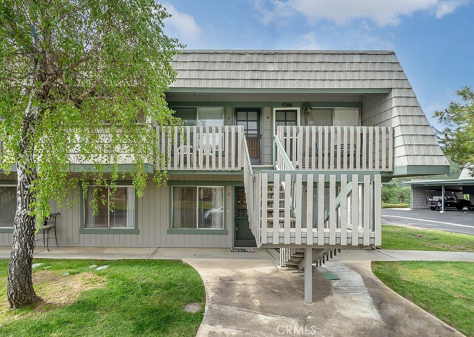 Adorable and cozy ground level condo located at beautiful Heritage Ranch. Floor plan offers two bedrooms and one spacious bathroom. One of bedrooms has a sliding glass door that opens to the back patio area perfect for relaxing and enjoying the amazing views that surround the lake and tree covered mountains. Hard surface flooring throughout, fans at living room, bedrooms and kitchen. Plenty of counter space at kitchen with breakfast bar. A covered car-port with extra storage. This property offers access to private pool, laundry facilities, great BBQ area, along with walking trails and beautiful Lake Nacimiento with boat launch access. Come enjoy lake living and all that Heritage Ranch has to offer, including tennis and pickle ball courts, multiple pools, a dog park, hiking trails, an equestrian center, boat launch access, Cappy Culver elementary school, grocery store, gas station, and restaurants.