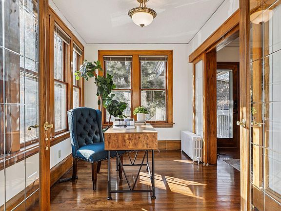 Minneapolis Chain of Lakes. This home is bright and airy from abundant South-facing windows. The main level features hardwood floors, wood-burning fireplace, sunroom with French doors and lake