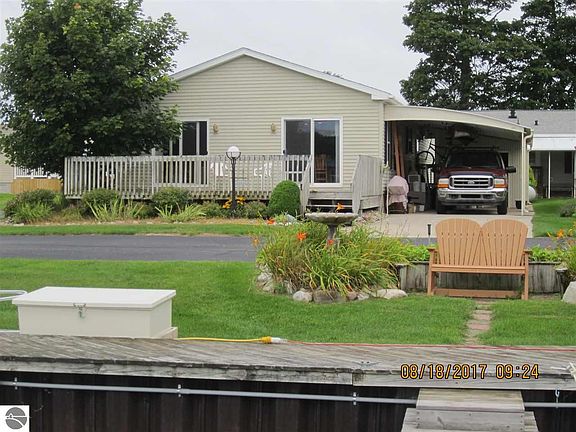 1456 Sq. Ft. 3 Bedrooms and 2 Full Bathrooms. This home is located in the Valleywood Cove Neighborhood of Point Arcadia, Arcadia, MI 49613. Home includes a wet slip which is 13 ft. by 30 ft. directly in front of home on a canal adjacent to Arcadia Lake. Arcadia Lake is an all sports lake with direct access to Lake Michigan. This home has a newer 560 Sq. Ft. carport incorporating a very nice 119 Sq. Ft. workshop and storage area. Valleywood Cove is a site condominium for manufactured housing. The annual fees are $2,285 which includes water, sewer service and maintenance/upgrades of all general common elements. Use of a community club house and tennis courts also included. This neighborhood is a quiet serene place to escape and enjoy the wonderful benefits of a slow paced small town on Northwest Michigan's Lake Michigan west coast.