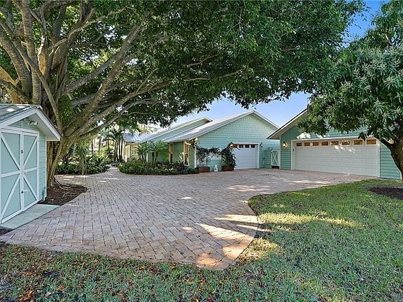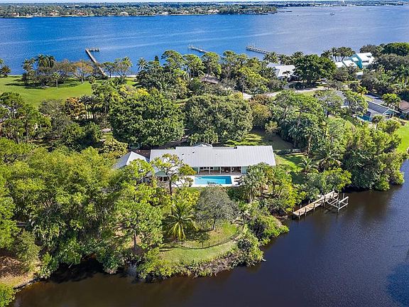 Welcome to this move-in ready home in Wide Waters. The charming front porch w/ Ipe deck welcomes you to this coastal style home w/ Southern yellow pine plank floors, lots of natural light, beautiful Cypress ceilings & open floor plan. Large center island kitchen w/ custom cabinets, gas cooktop, walk-in pantry & adjoining butler's pantry accented w/ Jerusalem granite & a wine cooler. Spacious master suite w/ luxurious bath includes two vanities, soaking tub, walk-in shower, and 4 closets! In a private wing of the home is a large guest bedroom, perfect for in-laws or extended stay guests. Outside is a spacious patio w/ covered entertaining area & sparkling "Cabo Blue" pool. Enjoy flowering & mature trees such as Hong Kong Orchid, Mahogany, Banyan, Crepe Myrtle, on this acre lot w/ a fenced rear yard & private dock w/ lift on sheltered water. Perfect location for the Doctor working at Cleveland Clinic, just 25 minutes to all 3 hospital locations: Tradition, Salerno Rd & Downtown Stuart.