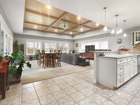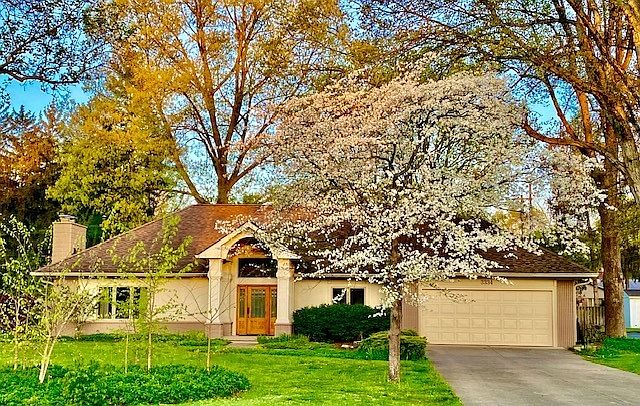 Forest Park is beautiful in the summer! This modern & updated 5000+ sq.ft. home is nestled in the heart of a woodsy & private neighborhood. Natural light fills the 25x22 great rm that is open to the kitchen & the large center island. French doors to the cov. patio from the great rm & the main-floor primary ste. 3 spacious BR's + a bonus room in the basement w/its own large window. A full bath w/custom tile on each floor + a 1/2 BA on the main floor for guests. Main floor laundry. Butler's pantry. Hardwood floors. Gas fireplace. Private sauna. Privacy-fenced yard w/storage shed & mature trees. You'll love being walking distance from Parkside Elementary School, the People Trail, the soccer fields & parks. This is a one-of kind home.
