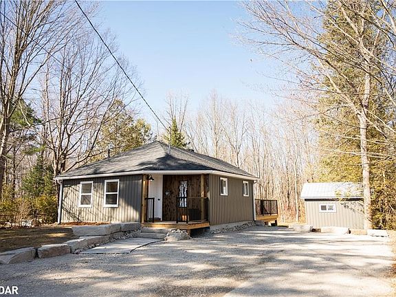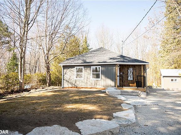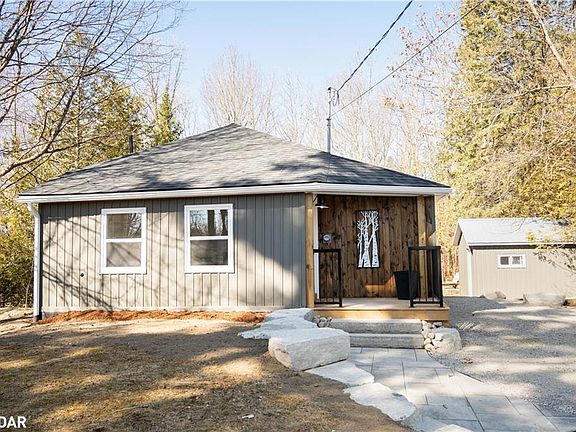 SOLD FIRM Spring is here and so is this amazing new listing! Welcome to the BIGGEST little house in Washago! This updated little gem will leave you breathless. The open concept 2 bedroom, 1 bath home features 14 foot ceilings with custom wood beams,, ship lap feature walls, new windows, new doors, new flooring, new bathroom, new electrical, new shingles, new siding, new soffit, new fascia, new eaves trough, new blown in insulation. The new kitchen features quartz counter tops and you guessed it NEW stainless steel appliances. It doesn't stop there! A NEW 12 x 24 detached garage, deck, firepit, new landscaping (armour stone) and new siding, window, door, soffit and fascia was added to the existing shed. If that wasn't enough to get you excited, maybe being down the road from Centennial Park, a dog park, boat launch and beach will do it. Walk to the Canoe for a coffee or "R" Cottage for dinner followed by Scoopz for an ice cream cone. Call immediately, to book your own personal Washago experience. You will not be disappointed!!