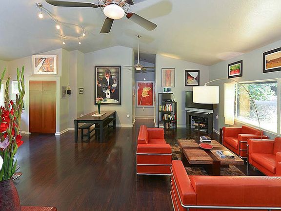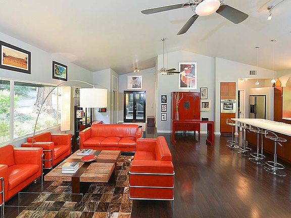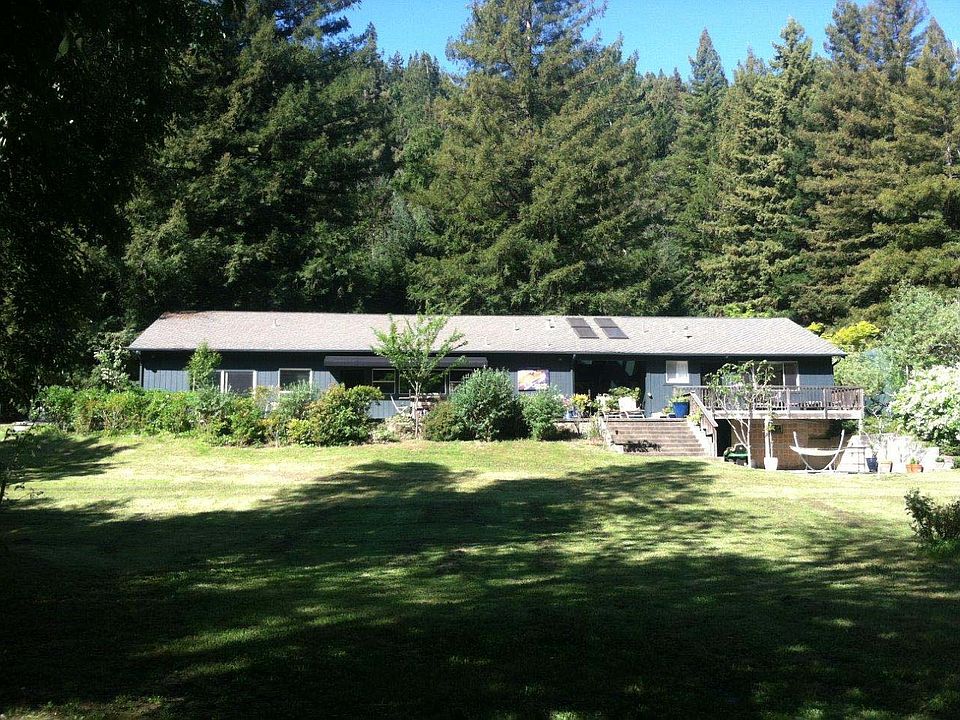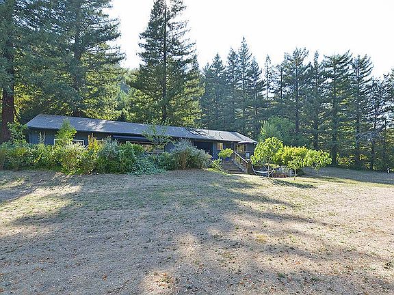 Open, artistic, architect's private getaway. Remodeled with a fresh casual feel this 3BD/3BA on 2.06 +/- acres (includes guest studio) is perfect for a relaxed gathering of family and friends. The modern kitchen and living space opens to large terrace taking in beautiful, natural grounds with majestic Redwoods and fruit trees. This home was created to entertain indoors and out, and offers ample room to expand. Location is private and secluded, only minutes to town.