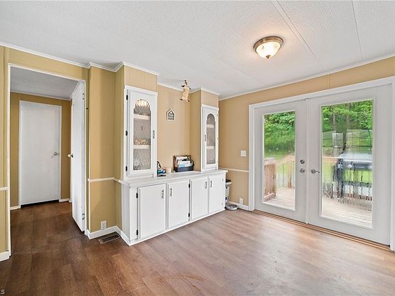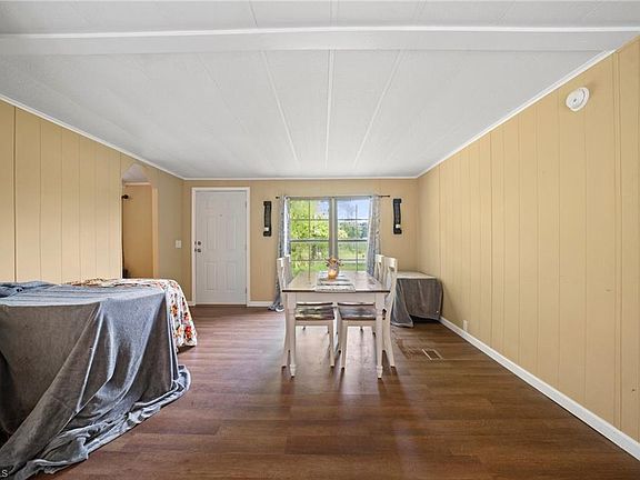 Double wide manufactured home sitting on 1 acre. 3 bedrooms, 2 baths. Vinyl flooring throughout the entire home. Large entry way and dining area with built ins. Living room with fireplace. Kitchen with tons of cabinet space & white appliances. Primary suite with dual vanity, garden tub & separate shower.