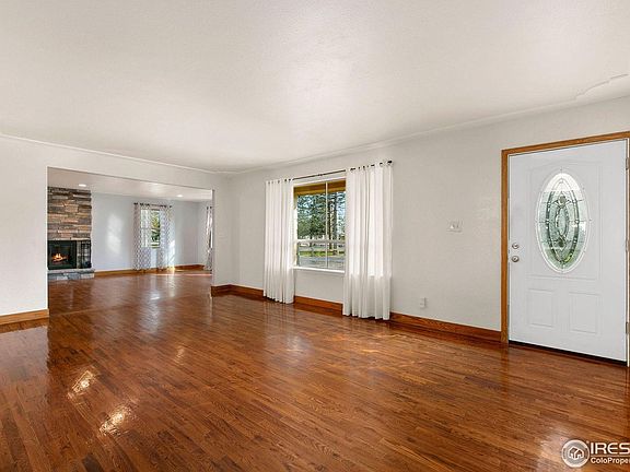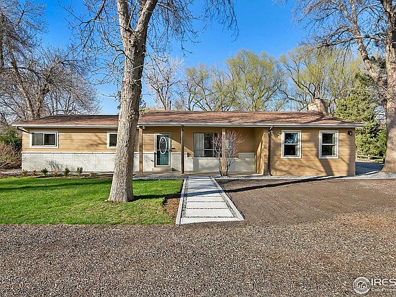 This gorgeous ranch home is perched on over an acre of land in north Fort Collins. The location is truly unbeatable. While it offers a peaceful retreat from the hustle and bustle of city life, it's still just a short drive from all the action of vibrant Old Town where you will find countless shops, restaurants, and festivities. As soon as you step into this stunning home, your eyes will be drawn to the gorgeous wood floors, fresh paint, and bright interior. The living room is connected to a family room that features a wood-burning stone fireplace, creating an open and inviting space. The spacious dining room has built-in cabinets and a wet bar and it flows into the kitchen, so you can entertain guests while preparing a holiday feast. The kitchen has a center island, new stainless appliances, and a big picture window that overlooks the lovely grounds. Enjoy casual meals or your morning coffee in the cheery sunroom, or transform the room into a scenic home office. There are 4 bedrooms in the home, giving you multiple options for guest rooms and office space. Outside, you'll find a sprawling yard that is perfect for outdoor activities or simply enjoying the stunning Colorado scenery. With so much land to explore, you will have plenty of room for gardening or just enjoying a quiet picnic in the shade of mature trees. The well-maintained lawn attracts abundant wildlife and the circle drive is convenient for gatherings. Additionally, this home has a sizable detached garage and two storage sheds with plenty of room for all of your vehicles, tools, and equipment. The home and garage received new roofs in the fall of 2021. Homes in this sought-after part of town don't last long, so you won't want to miss the chance to call this incredible property HOME!