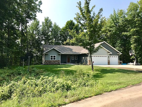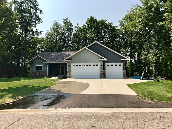 Beautiful pond views in a quiet subdivision! California split with jetted master bath, upstairs walk through laundry all on 2.37 acres with deeded access to the WI River. Home was built / purchased in 2015. Laundry room, concrete driveway, blinds, deck, and yard with in ground sprinklers completed from 2016-2018.