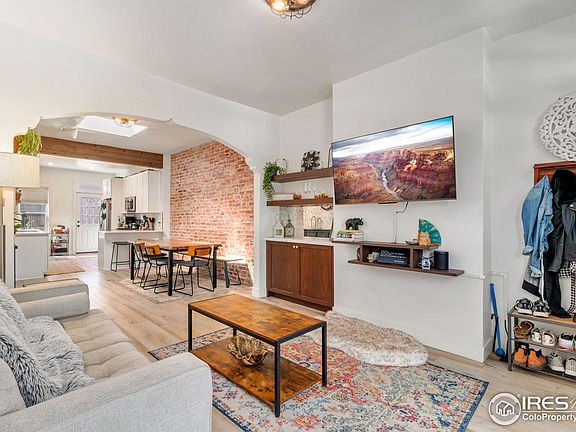 Here's the one you've been waiting for! This beautifully updated bungalow style townhome offers the perfect blend of historic charm and modern amenities. Minutes from downtown Denver, the Highlands, and Sloan's Lake, this home offers easy access to all the city's attractions while maintaining a peaceful, residential feel. Conveniently located close to local cafes, shops, and parks, offering the best of urban living. Upon entering, you are greeted w/ new interior paint, open floor plan, a flood of natural light, modern fixtures and an authentic exposed brick wall. Fully updated kitchen including 42" cabinets w/ soft close doors and drawers accented w/ brushed gold hardware, floating shelves, quartz counter tops, and a large SS basin sink. Enjoy a stylish and modern bathroom w/ full height tile shower and frameless door. Additional living space in basement perfect for possible 3rd bedroom, home office, or added entertaining area. Lovely fenced back yard w/ artificial grass, pavers and hanging lights. Don't miss the opportunity to own this stunning home in one of Denver's most vibrant neighborhoods!