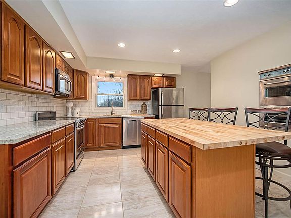 Setting up on 10 acres, you will enjoy the peaceful scenery and country setting from the many viewing points of this Bi-Level home. The main living space is on the upper level. Featuring a large kitchen w/ an island, 3 ovens; a double wall oven and a range w/ warming drawer. Maple laminate flooring, heated slate flooring in the entry as well as the master bath! A beautiful balcony off the back of the home with sliding doors from the living room. A free-standing wood burner keeps the living space nice and cozy in the colder months. The Lower level features a finished living space that is equipped with a full kitchen, full bath, bedrooms, living space, wood burning fireplace, a walkout to the garden level patio, separate entrance from the garage and access from the main entry of the home. As icing on the cake the home has newly installed Wallside windows with a transferable warranty and a newer metal roof.