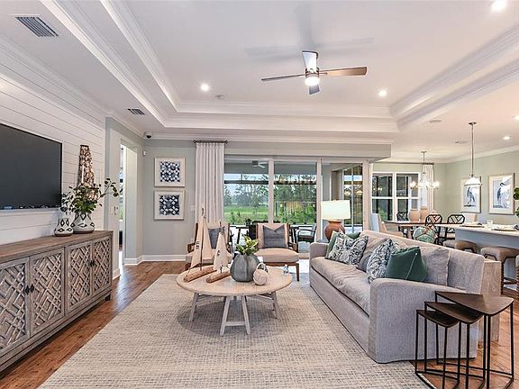 Three-car garageExpansive screened-in lanaiOutdoor kitchenBreakfast barSparkling poolContemporary pendant lightingTranquil conservation area