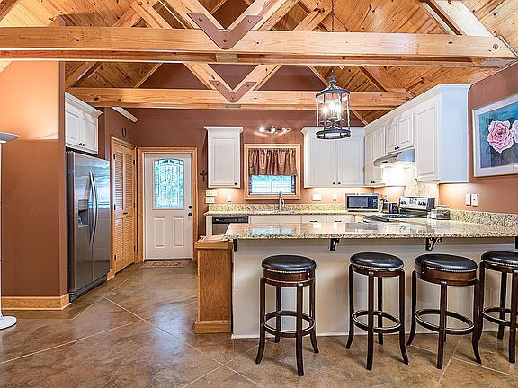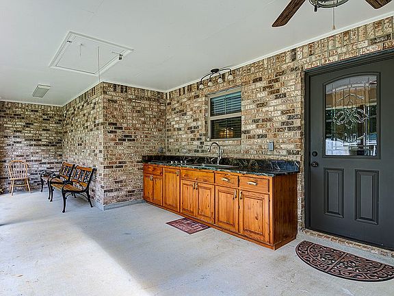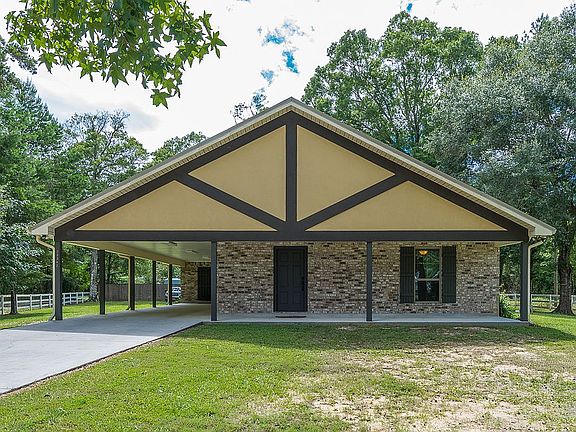 This Custom 2500 sq. ft. under roof built home sits on a beautiful piece of property, no flooding ever. Quiet neighborhood 1 mile from major grocery store. 5 miles from Wal Mart. Post tension slab. There are soaring 17' cathedral ceilings with twin beams, LED lights, and the stained and scored concrete in the kitchen and living room! The master bedroom features a walk in closet with his and hers sides and a bathroom with a custom built 4'x6'; 2 shower heads and stained concrete floors. The second bedroom also has a full bathroom! Outside there is a beautiful outdoor kitchen with marble counter tops, 4 burner cooktop, sink, and cypress cabinets. There is planned room for 3rd. bedroom. Utility room and half bathroom sits at the end of a 50'x 13'.2" carport. There is a power pole that is set up for your RV power! There is a 220V outlet for jacuzzi on the back porch. There are 2 workshops (10' X 24') with roll up aluminum door A/C and Heat. The 2nd storage shop is 12'x22' has a ramp for your lawn mower and 4 wheeler. Shops are roofed to have boat or truck carport. The left side of the back yard is graveled I turn a 40' camper and park it . It will hold 10 cars. Property 3 board fence with horse wire; bring the dogs! This beautiful home is move in ready and waiting you! "One of a kind, Must see to believe"