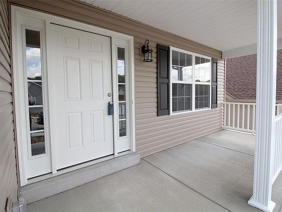 Dont miss out on this beautiful 2 story inventory home in the ever popular Amberleigh Woods subdivision. 4 bedroom, 2.5 bath, almost 2100 SF of living area. Large covered front porch with white vinyl hand-railing 3 car garage is a must have. Main floor offers plenty of windows coat closet formal separate dining room. Upgrade carpeting throughout. You will enjoy the direct vent gas fireplace with marble surround on wintry days. Great Room has plenty of space & windows. 42 oak cabinetry, crown molding, breakfast bar, stainless appliances, sliding door pantry. You will like the adult high vanities, walk in closets, 2nd floor laundry. Walk out basement finished framed out back wall, sliding door + 2 additional windows, rough in plumbing, sump pump and pit. 92% high efficiency forced air gas furnace. 12x12 cedar deck off breakfast with an amazing view of the countryside. Limited Builders Warranty and 2/10 Home Buyers Warranty. Plenty of common ground, subdivision pool,