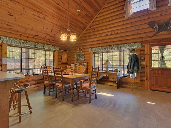 Extremely rare Murphys opportunity to own a custom log built estate on 3 acres that is just far enough into the hills to truly feel the beauty of the trees and mountains. Only 4 minutes to downtown Murphys, 14 minutes to Big Trees, 18 minutes to New Melones Lake and 40 minutes to Bear Valley Ski Resort. Plenty of room to entertain with full covered wraparound deck that extends around the entire home. Large gourmet kitchen and living room with wood burning fireplace. Only a couple minutes away from many hiking, biking and horseback trails on the Arnold Rim Trail which is just on the other side of the Highway. Maybe do some of those activities here also. Bring your ideas unlimited possibilities and maybe even a wedding venue. Massive upper loft has space for several beds and/or a recreation area. Could be easily enclosed with a couple walls if a private 2nd bedroom was wanted. Very comfortable master bedroom on main floor that has separate his/hers walk-in closets and large bathtub and separate shower. 3rd bedroom for guests is attached by covered breezeway parking area. Property also has it's own pond. Premium place to vacation, or to live your best life everyday full time.