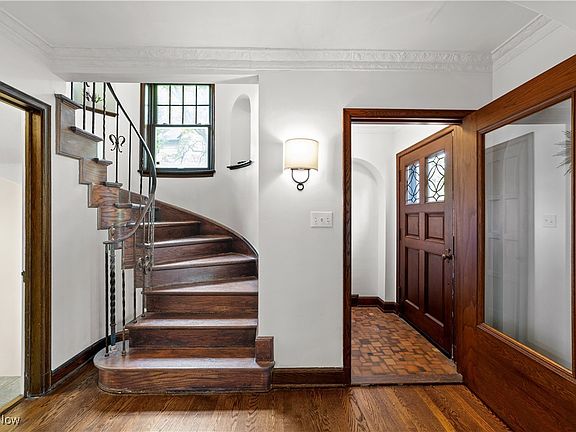 Wow! Here is your chance at being the next owner of this charming 1930s brick colonial nestled in the heart of the coveted Fernway neighborhood. This architectural gem showcases a stunning winding staircase with wrought iron railing and charming wooden alcoves—an elegant centerpiece of the home. The spacious living room is anchored by a striking oak mantel with a tile-surround gas fireplace and is filled with natural light. Flowing seamlessly from the living room, the dining room offers ample space, designer lighting, and a built-in bar closet—ideal for entertaining. From here, step out to the inviting covered porch, perfect for morning coffee or quiet evenings. The renovated kitchen (2015) combines classic and contemporary style with white wood cabinetry, gleaming quartz countertops, and stainless steel appliances. A stylish powder room and a functional pantry/mudroom complete the first floor. Upstairs, you’ll find three well-sized bedrooms with generous closets, and a beautifully updated full bath featuring heated marble floors and custom tilework. The finished lower level offers a cozy family room with a brick fireplace, recessed lighting, and a bonus workspace—great for hobbies or working from home. The utility room adds extra storage and built-in shelving. Outside, enjoy a beautifully landscaped backyard with a spacious patio, ideal for summer entertaining. A unique arched wrought iron gate adds curb appeal and architectural charm. Additional highlights include central air conditioning, a newer roof, a recently replaced hot water tank, newer washer and dryer, and thoughtfully chosen designer lighting throughout. All just moments from the Van Aken District, the Rapid, and top-rated Shaker schools including Fernway, Woodbury, and the High School. A true gem—don’t miss your chance to call this home!