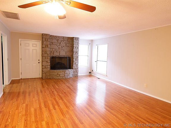 This darling patio home on a corner lot in Jenks schools offers: updated kitchen and bath, solid surface flooring, sprinkler system, appliances, roof, hot water all replaced over past few yrs. New Central Heat & Air + Added Insulation, New Paint. Master is downstairs, other 2 beds up. Walk ins & large closets throughout. Kitchen has pantry & there is a dedicated laundry room. Enjoy the view of your Low maintenance yard from the balcony! Come see it today!