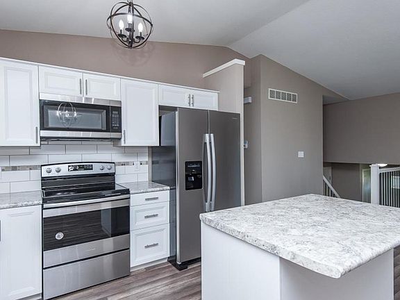 Talk about turn-key! This four bedroom, two bath home is full of NEW - it has been completely renovated with neutral colors and is ready for you to move right in! Super convenient location near the trails, shopping, and dining! This layout gives so much open space on the main floor - the living, dining, and kitchen all have vaulted ceilings and tons of light! The stunning kitchen offers beautiful cabinetry, counters, accented backsplash tile, island with seating, classy lighting, and SS appliances with the tags still on! The spacious baths have gorgeous ceramic tile floors and accented tub surrounds. All four bedrooms are good-sized and have large closets. Paneled doors and new railings with metal spindles. Newly landscaped, freshly stained deck, and two-stall garage. Home has been pre-inspected.