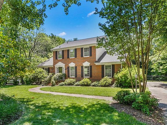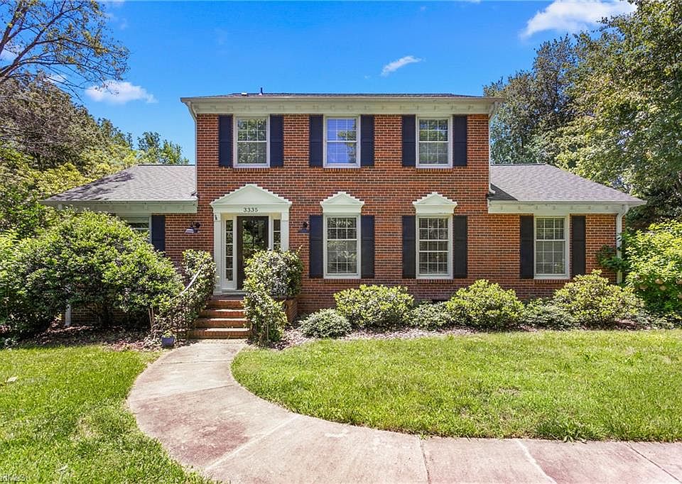 Stroll to Morehead School, Starmount CC, Hamilton Lakes Park & Swim/Tennis Club from this beautifully updated home! Modern, neutral finishes flow throughout, with hardwoods on both main and upper levels. The open-concept living, dining & kitchen area features recessed lighting, a wood-burning fireplace, and a massive quartz island with cabinet storage, gas range, pot filler & SS appliances (all convey!). Primary suite on main boasts a stunning bath with dual quartz vanity, newly tiled floor, tiled shower w/ rain head & stylish finishes. Upstairs: 3 spacious bedrooms—one with Primary potential—and a tiled full bath. Enjoy the outdoors on the two-tiered deck, in the fenced backyard, or on the screened porch (TV conveys!). 2019 Roof. Thoughtful extras include a laundry room with cabinets, folding counter, and W/D included!