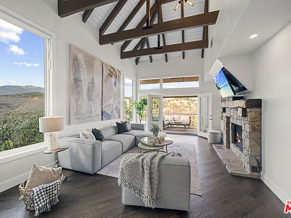 Stunning Westlake Pointe end town home with unobstructed panoramic views of the lake and Santa Monica Mountains from virtually every room. Perched above the lake and located next to open lawns, with just one shared wall, this west facing 4 bedroom, 3 bath spacious home enjoys ultimate privacy. Completely renovated from top to bottom, the property has been transformed into a modern, entertainer's showplace with clean, spare lines, utilizing the highest quality styling and finishes. Flooded with natural light, the open flowing living spaces feature a spectacular beamed cathedral ceiling living room, stylish eat-in chef's kitchen with stainless steel appliances, new gleaming bathrooms with top of the line fixtures, new hardwood and porcelain floors and custom lighting. The huge primary suite and spa-like bathroom with a lovely view patio offer a gentle refuge from the bustle of the day. Enjoy the glorious sunsets from your spacious patio with motorized retractable awnings. Steps to the pool, the lake and close to award-winning schools, this private and serene showplace is the perfect retreat, yet is just minutes from the heart of Westlake Village.