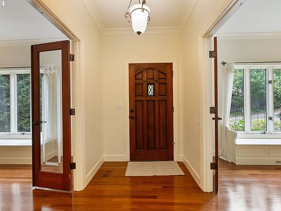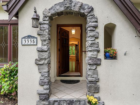 Located on a quiet, flat dead-end street in Forest Heights, this custom Tudor-style home offers a peaceful retreat while being just minutes from the award-winning Forest Park Elementary School. Crafted with attention to detail, the home features custom doors and Tudor-inspired finishes throughout.The versatile floor plan includes a spacious bonus room, ideal for an office, playroom, or media space. Recent updates in 2024 include refinished hardwood floors, fresh paint, and new carpeting, giving the home a refreshed, modern feel.Surrounded by a greenbelt on three sides, the property provides exceptional privacy. Step outside to a level, fenced walk-out yard that opens to an expansive private greenspace. The yard features a wraparound deck, stone patio, and a retaining wall, with wisteria draping gracefully along the railings, adding natural beauty to the outdoor space.Inside, large custom windows flood the home with natural light. The kitchen is equipped with updated countertops, and the living area is centered around a marbled fireplace, creating a cozy focal point.Blending classic Tudor architecture with modern updates and a private, nature-filled setting, this home offers a rare combination of comfort, privacy, and convenience. [Home Energy Score = 5. HES Report at https://rpt.greenbuildingregistry.com/hes/OR10233094]