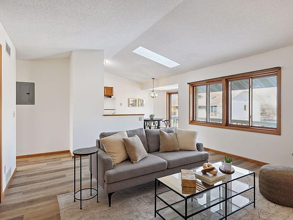 Step into this move-in-ready gem! This charming 2-bedroom, 1-bathroom condo has been thoughtfully updated with modern flooring, fresh paint, stylish light fixtures, and a brand-new HVAC system installed in 2023. With the convenience of 1 garage stall and an assigned parking spot, parking is a breeze. The open floorplan seamlessly flows onto a spacious deck, perfect for indoor-outdoor entertaining. Both of the bedrooms are light-filled and the unit has in-unit laundry. Prime location with easy access to Hwy 100 and Hwy 169.