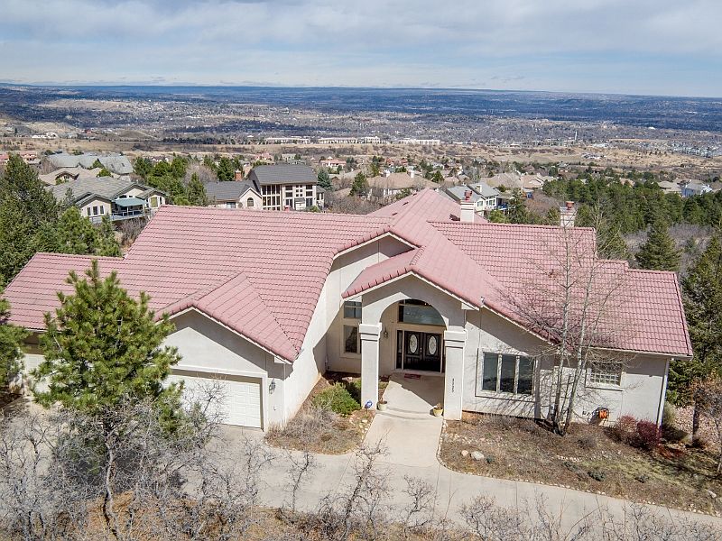 Soft contemporary custom ranch design w/ Million $$$ Views of City, Mountains & Garden of the Gods * Gorgeous covered entry w/ double doors * Soaring great room w/ focal fireplace, Brazilian Cherry wood floors & a wall of windows opening up to massive decking * Formal dining room features intricate designer ceiling & lots of glass * Gourmet kitchen w/ granite countertops, double ovens, SS appliances & large breakfast area * Large master suite w/ fireplace, walkout & adjoining 5 piece luxurious bath w/ huge walk-in closet * Main level office has huge windows and is very spacious * Laundry & mud room on main is conveniently located off of the garage entry* Lower level Features a gorgeous staircase leading down to the lower living space boasting a huge family room w/ fireplace, step behind wet bar which is awesome for entertaining & walk-out to private lower decking with incredible city light views* Dedicated billiard space is a bonus * 9' Ceilings compliment the 3 additional bedrooms, 3 full baths and dedicated work-out room which round out the lower level * Wrap around deck is the perfect place to entertain in style with the city lights twinkling below! Huge 4 car garage for all of the toys * Low maintenance yard and so much more * This home is ready for immediate consideration and is in move-in condition! No need to look any further, check this one out, you'll be glad you did!