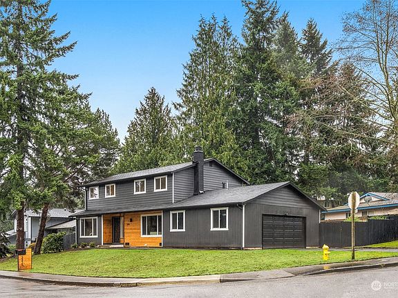 Renovated Twin Lakes corner lot home w/ modern exterior finishes. Upon entering, the main level offers contemporary features throughout. Kitchen is equipped w/ SS appliances, including oven w/ air fryer setting, farm sink & stunning white quartz counters. Formal living / dining rms & cozy family rm w/ fireplace & stylish grey faux wood flrs. Upstairs boasts 4 beds w/ plush carpeting & 2 baths, including luxurious primary suite. Prof. painted interior & exterior, newer flooring throughout, double pane windows, new electrical panel, cleaned roof & recently serviced gas furnace. Fully fenced yard w/ entertainment sized Trex style deck & room for RV. Minutes to shopping, Dash Point Park & Golf! Join Twin Lakes CC for golf, swim & tennis.