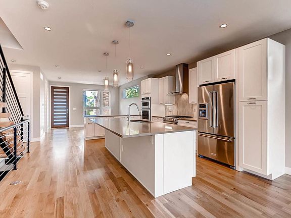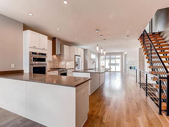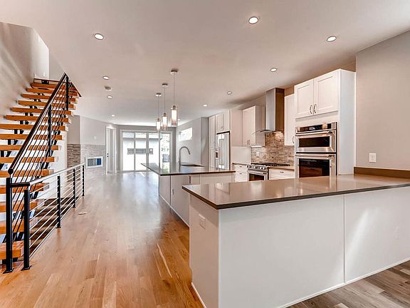Construction completed in December! Move in ready! Modern design with state of the art construction. Basement is fully finished with bedroom, bath, large family room and bar. Large rear rooftop deck, oversize H20, 2 furnaces, 2 AC Units, 5" hardwood plank floors w/ custom stain. Custom cabinets with quartz counter tops, 2 ovens in kitchen, all stainless steel Kitchenaid appliances. Open floating stairs with raw steel custom made hand rails. 3rd floor entertainment room with kitchenette and powder bath open to rooftop deck. Custom designed exterior, covered front porches, front and back landscaping and sprinkler systems. 2 car garage with alley access, privacy fence. Custom tile in baths. (Photos are from a nearly identical unit by same builder.) New construction