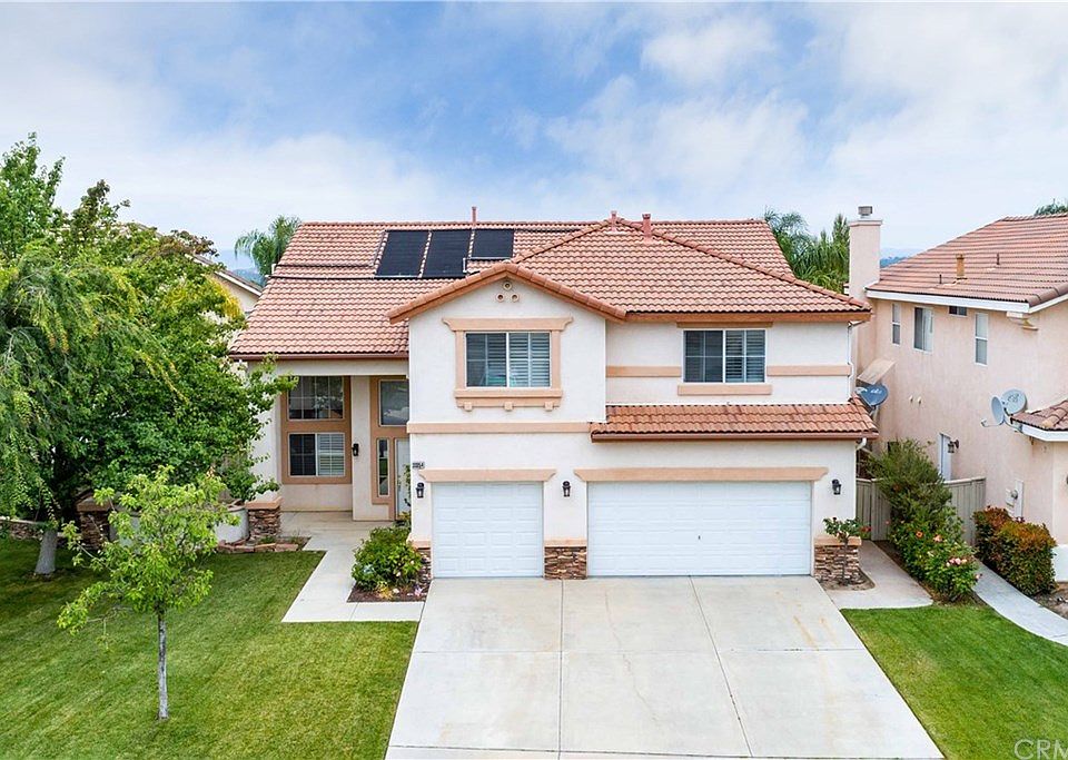 POOL HOME! Absolutely stunning 2-story home in the community of Redhawk. This beauty boasts lush landscaping and brick accents on the exterior. As you walk inside, you will be greeted by majestic high ceilings, 2-tone paint and beautiful wood laminate flooring. The windows are accented with shutters and there is a formal living and dining room space for entertaining. The open concept kitchen is fully equipped with all appliances including a refrigerator, a breakfast bar with room for bar stools and a walk in pantry for additional storage. The family room has a gas fireplace, ceiling fans and built in niche with plenty of space for a large sectional where you can gather after a long day. There is a room downstairs that can double as a 5th bedroom or home office and a full bathroom for added convenience. Make your way to the 2nd floor where you will find a spacious loft, 3 generously-sized guest bedrooms and a laundry room. The impressive master bedroom features hard surface flooring, a separate seating area and a spectacular deck that extends the entire length of the home with valley and mountain views. The master bathroom has double sinks, a vanity area, dual closets and a soaking tub. The best part of this home is the entertaining back yard with a beautiful pool and spa and outdoor fireplace. This home is close to schools, freeways and shopping. Front landscaping, pool service, HOA dues and trash is included. Call today!