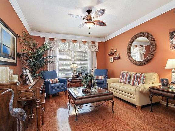 Priced at recent Appraised Value!! This 4bedroom, 3.5bath Pool/Spa home has all the finishing touches of a Model Home. The Master Suite is downstairs and all other spacious bedrooms are found on the second level. In the Den, Formal Dining & Living room you will find hardwood floors, crown molding and window treatments. In the Family Room there is wood tile floors, window treatments and access to the Lanai and enclosed pool/spa retreat. The gorgeous kitchen showcases 42" cherry cabinets with crown molding, stainless steel appliances, corian countertops, and tile backsplash. Large master suite features sliding glass doors to the pool/spa deck, Master Bath: garden tub, separate shower, marble countertops and cherry cabinets. The outdoor space is perfect for relaxing, entertaining, and laying in the sunshine. The covered lanai, enclosed pool and spa, that have solar and gas heating and the backyard has 6 foot vinyl fencing for your privacy. Also, around the house you will find landscape lighting and a well landscaped yard. Upstairs you will find three generous sized bedrooms, a game room that fits a pool table and a great space to gather and watch movies, sporting events and or play pool. All of the bedrooms closets feature a closet systems, no wire racks will be found!! As you walk through this showcase listing, take note of all the extra décor you will be gaining in this DR Horton Home, built in 2005. The current owners had a profession decorator help with the interior design and it shows.