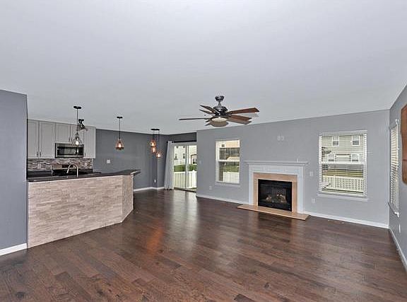 This outstanding 1764 sq ft 3 bedroom, 2.5 bath two story has a contemporary flair. Past the covered front porch, beautiful hardwood floors span the main floor. A gas fireplace warms the great room and opens to an upscale kitchen... fully equipped with stainless steel appliances (gas self-cleaning oven, dishwasher, microwave and side by side refrigerator).42"wood cabinetry, silestone counter tops,deep pour sink, tile back splash,stone faced breakfast bar and a pantry add to the style and function of this space.The breakfast room bay opens to a level fenced yard with a 14x20 patio and a pergola. Upstairs the master suite is highlighted with cove ceilings, his & hers walk-in closets, a luxury bath with adult height sinks, separate tub/shower and a water closet. Two bedrooms with walk-in closets, full bath and a convenient laundry room with washer & dryer complete this floor. You will enjoy having ceiling fans in all bedrooms, an insulated garage and a vessel sink in the powder room.