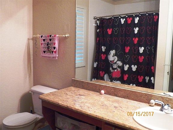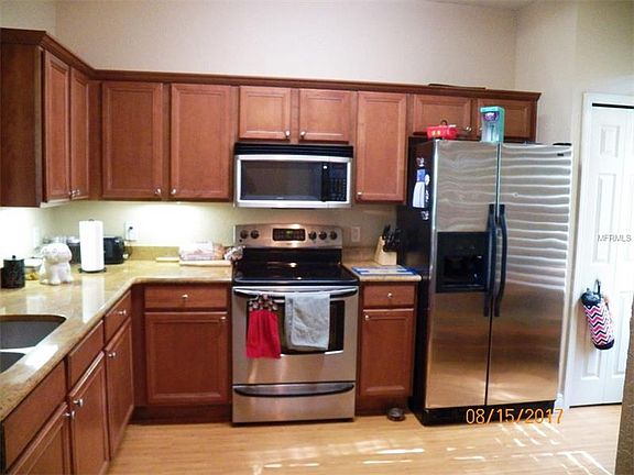 3 bed, 2.5 bath, nothing at the back, great for privacy. This property is upgraded. Laminate floors, plantation blinds, upgraded furniture, granite counter tops, stainless steel appliances, check out the pictures! Regal Palms is an exclusive private, gated Resort community located just 15 minutes from Disney World's Main Gate. The complex consists of 600 town house style homes in a lovely Tuscan Villa style setting with several amenities. You will be delighted with our 2 1/2 acre tropical swimming pool and lazy river oasis, complete with heated pools, water slide with waterfalls, outdoor & indoor Jacuzzis. Sun bathing terraces, a playground and a volleyball court with a pool side "tiki" bar. The fitness center has a therapeutic Jacuzzi, steam room and sauna along with elliptical equipment. The spa allows you to pamper yourself with massage, manicures and pedicures, etc. Inside you can enjoy dining at our restaurant and bar, surf the internet on your laptop using free Wi-Fi, or utilize our business center. We offer live entertainment (seasonal), event celebrations on holidays and even a market place for the must have items! The Guest Services is open 24 hours. Onsite is Banana Jacks, a 4000+ sq. ft. family style environment with games, food & fun for all ages. Regal Palms is the most highly sought Resort Community in the Davenport area for short term rental. Residential is also available.