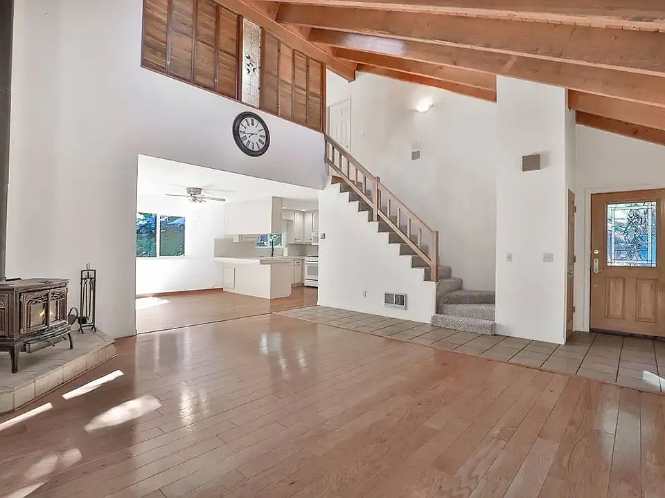 Home Size: 1,876 Square Feet. 3 bedrooms 2 baths, with bonus room (converted basement). Other amenities: Wood burning fireplace (wood shed with wood included), tankless water heater, central heating and AC, gas heater on bottom floor (basement), propane hookup for BBQ on back deck. Jacuzzi in downstairs bathroom. Washer, dryer and refrigerator included but will not repair if they stop working. Located just a few miles away from beautiful Jenkinson Lake. Rental includes access to HOA clubhouse which includes two swimming pools, basketball court, disc golf course, etc. One year lease, Tenant will pay all utilites