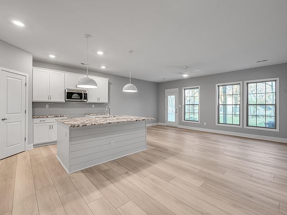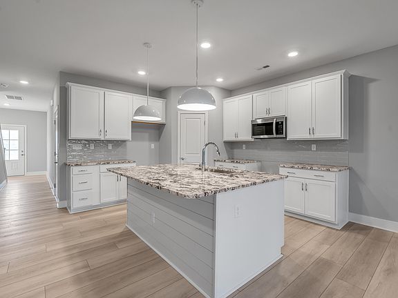 The Logan Square plan at the Peninsula Townhomes offers three bedrooms, two and a half-baths, and a one-car attached garage with an upscale, contemporary aesthetic. The first floor includes an open living space with kitchen, eating area, and family room open to one another. Townhomes feature 9' ceilings on both floors, a covered patio off the family room, electric vehicle charging outlet in the garage, and covered entry. The kitchen features Aristokraft Benton cabinets throughout with 42'' upper kitchen cabinets and island with painted shiplap, pendant lighting, and granite countertops with stainless large single bowl undermount kitchen sink. Appliance packages include disposal, dishwasher, smooth top electric range, over the range microwave, and side-by-side refrigerator. Bath 1 features a 5' shower with tile surround and two tile shelves, a double bowl vanity, and linen closet. Bath 2 has a tub'/shower combination and all bathrooms have raised vanities in baths with granite tops and rectangular bowls.. Enjoy the convenience and style of LVP flooring throughout first floor and in baths, utility room, WH closet, and carpet on stairs, upstairs hall, and in bedrooms. Luxurious, modern finish details include two-tone paint, Craftsman style trim, and ceiling fans in the family room and Bedroom 1. Enjoy the privacy and personal space of townhome living with all bedrooms on the second floor. All owners are members of the Peninsula Townhomes HOA, which provides exterior building maintenance and landscaping service, snow removal, and maintenance of common areas, as per the Declaration of Covenants, Conditions, and Restrictions.