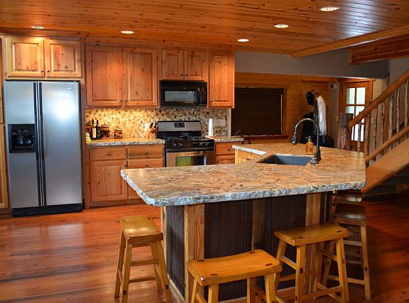 Beautiful custom cabin with all the extras! Main cabin features 5 bedrooms and 3 1/2 baths. Beautiful hardwoods floors, granite counter tops, and vaulted ceilings. Large kitchen and dinning area with open floor plan into the living room. Custom cabinetry! Beautiful master suite with large master bath with walk-in shower and soaking tub. Beautiful river rock fireplace, walk-in closet and private deck! Game room, office, mudroom, hot tub, large wrap around deck, with boardwalks to and around firepit. Large garage with 1500 sq ft. of living quarters above. 2 bedrooms, 1 bath. Kitchen area with open living space with a river rock fireplace, and kids loft. Garage space is plenty big for all the toys! This is a must see! Great year round access! Strong CC&R's to protect your investment! Great rental potential!! Call today for a tour!