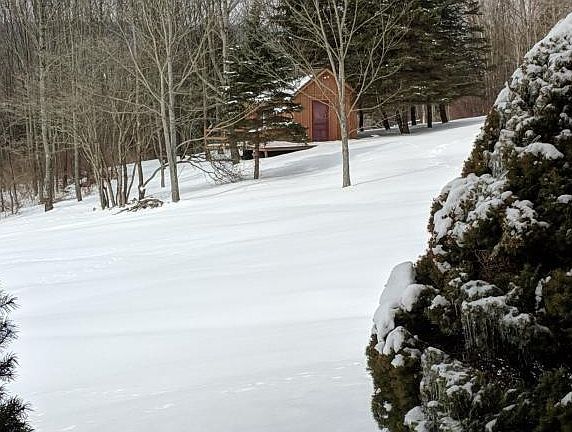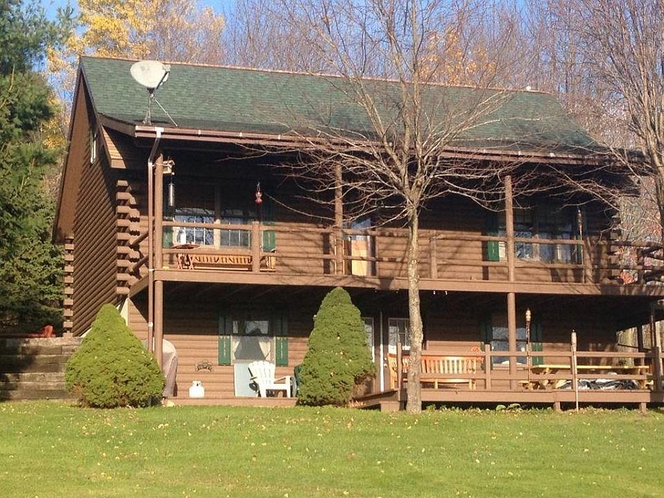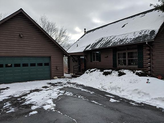 Nestled back in the woods, this Log Cabin home will bring that vacation feel to your everyday living! New Roof, with newly stained logs, two kitchens with income potential and its own private entry way. Spring fed pond and fully stocked to enjoy warm summer nights of swimming/fishing fun! Two covered porches to enjoy the stunning views, a little guest cabin and over 15 acres of trails for walks, adventures or snow shoeing! Close to the school and the village . Bonus...ONLY 15 minutes from Greek Peak!