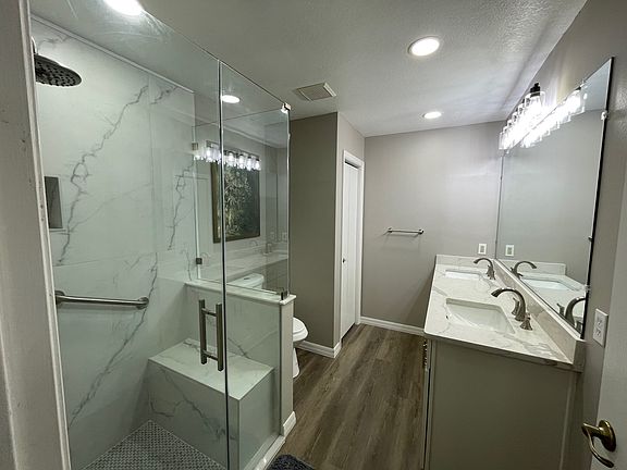 Dedicated office spaceQuartz counter topsIndoor laundry roomOpen floor planCompletely remodeled walk-in showerStunning kitchenModern appliances