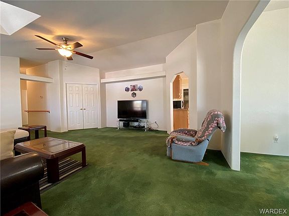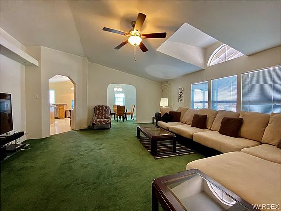 Pool home in Sunrigde Estates with no HOA! Spacious two-bedroom, two full baths with den/office that can be used as third bedroom and formal dining room. Large kitchen features stainless steel refrigerator and dishwasher, island, pantry, lots of counter space and casual dining area. Master suite with walk-in closet, dual sinks, garden tub and walk-in shower. Enjoy your morning coffee on the over-sized front patio or relax poolside while taking in the beautiful mountain views. Observation deck to enjoy our amazing Arizona sunsets and casino lights. Solar panels and new low E windows to keep cool in the summer without high electric bill. Plenty of room for all of your toys with off-set 24' x 24' garage with 8' door. 24' x 24' carport 9' high. Close to Davis camp, Laughlin and Lake Mohave! Call today for your private showing!