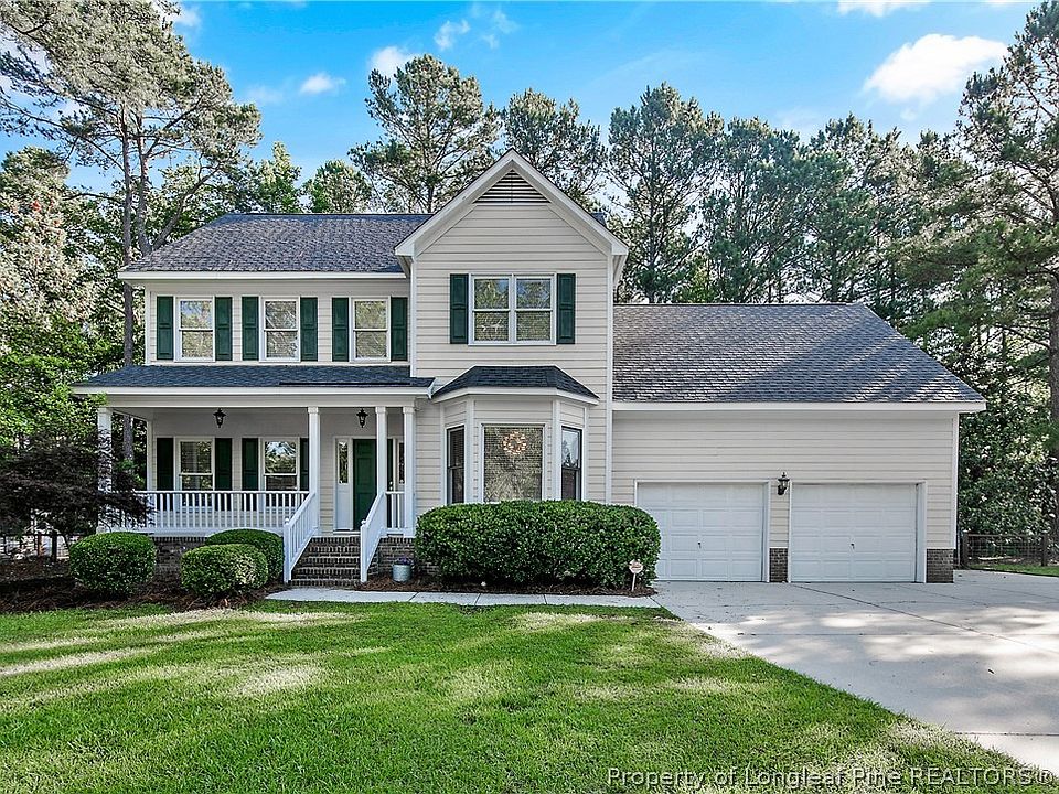 Charming colonial style two story home is situated on a large well landscaped lot in one of Fayetteville's most desirable neighborhoods. The large kitchen with updated stainless appliances, large farm sink, and 5 door LG refrigerator, opens up to den with fireplace and screened porch. Roof was replaced in 2021 and Gas Pack replaced in 2022. All bedrooms are upstairs. Original hardwood flooring throughout the entire downstairs. The 4th bedroom is a large bonus room with two closets, can also be used a great playroom for the kids or space for workout equipment. Backyard offers lots of privacy as it backs up to wooded area. Home has lots of storage area, including an extra shed in the backyard. Extra parking pad beside garage. Conveniently located close to schools, shopping, and restaurants.
