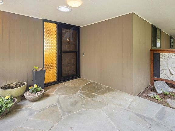 Suspended in the treetops along Portland’s storied bird migration path, this pristine mid-century treasure is a front-row seat to nature’s quiet theater. Here, eagles drift past your windows, the forest shifts with the seasons, and the line between indoors and out disappears with a slide of the glass doors. Originally built in 1965 and thoughtfully updated over time, this 2,672-square-foot home pairs iconic mid-century design with grounded, everyday luxury: heated tile floors, bamboo underfoot, and a rebuilt deck stretching toward the view. Inside, four bedrooms and three baths unfold with warmth and intention, anchored by two fireplaces—one gas, one wood-burning—and a kitchen now outfitted with Thermador double ovens for modern gathering. Original details remain beautifully intact, from internal wood paneling and period brick to vintage light fixtures, floating toilets, and a built-in GE transistor radio with integrated speaker system—offering a rare glimpse into the design sensibility of the era. With its clean lines, warm wood tones, and confident simplicity, Don Draper would feel right at home—Old Fashioned in hand. Lovingly maintained, the home is perched on a ridge in Portland’s Southwest Hills, where light filters through the trees. Here, life feels more attuned to the rhythm of nature—timeless, quiet, and deeply considered. [Home Energy Score = 9. HES Report at https://rpt.greenbuildingregistry.com/hes/OR10043081]