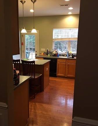 Coming available mid January. $1,850 per month. Beautiful, 4 bedroom, 2-1/2 bath house in North Raleigh (Wakefield); 2-car garage. Golf course fairway through trees in backyard - great family area. Hardwood floors downstairs in kitchen and dining/living room, berber carpet in family room and upstairs. Eat in kitchen, center island with all appliances including fridge. Tile back splash and solid surface counter tops. Family room with ceiling fan and gas log fireplace. Large master bed with vaulted ceiling, very big master bathroom and large walking closet. Upstairs laundry. 3 additional bedrooms, all approximately the same size. Second bedroom has access to the upstairs second bathroom. Great schools! Walk to Forest Pines (traditional) / North Forest Pines (year round). Walk to Wakefield Elementary Middle and High School. Location - Super Target, Super Walmart, Lowes, Home Depot, Sam's Club, Starbucks, many Restaurants... are only a mile or two. Call or text 919-961-6561 for more info or to schedule a viewing.