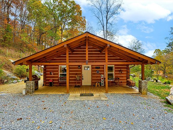 This is a must see!! Nestled in one of the most picture perfect places in Sevier County, this handcrafted log cabin is a true gem. Built in 2016, this 1,600 sq. ft. cabin sits on 1.9 acres and offers 2 bedrooms, 2 full baths. It includes a spacious master bedroom with a large walk-in closet. Enjoy the warmth of your wood-burning fireplace all winter long. The charm continues with a private hot tub where you can unwind while gazing at the starlit sky in peaceful seclusion. Complementing the main cabin are hand-built log storage sheds that beautifully match the home's design. Additionally, the property is handicap accessible, and the fenced-in yard with a lockable gate ensures privacy and security. Located just 25 minutes from the renowned Dollywood and conveniently near Highway 411, the cabin's exceptional location adds to its appeal. While this home has never been rented, potential projections estimate an income of $40,000 to $50,000. Schedule your showing, and come view this country farm land and mountainous area today!!