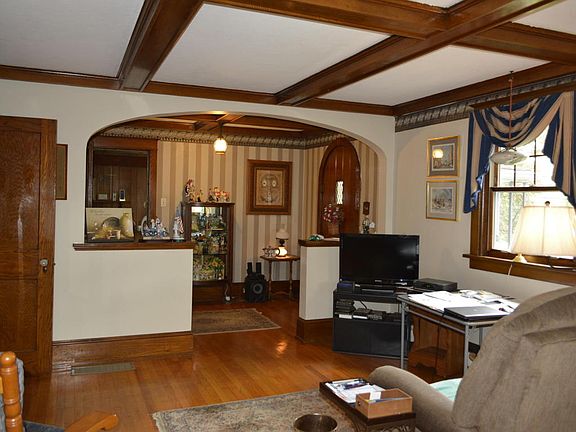 Adorable bungalow features hardwood floors, natural woodwork and generous sized rooms. Updated kitchen with granite counters, pantry closet and small breakfast bar. Bonus room, currently used as office could possibly be a 3rd bedroom. Private deck on back, and a small patio. Detached 2 car garage. Offered at $144,900.