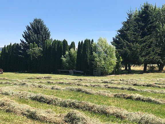 Beautiful parcel! Level to gently-sloped 4.5 acres, mostly open ground, good hay production. 1979 manufactured home, well-maintained, 3 bed/2 bath. Newer heat pump. Metal siding. Roof in good condition. Irrigation rights. Propane fireplace. Odell Creek crosses NW corner of property.